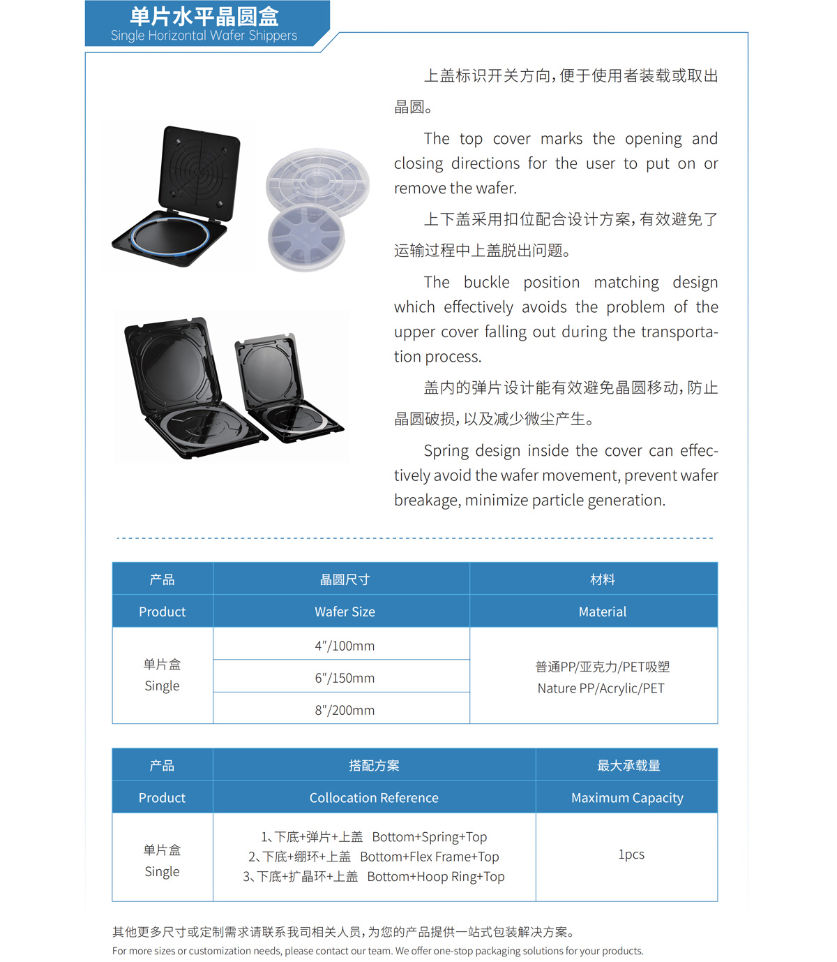 Single Horizontal Wafer Shippers